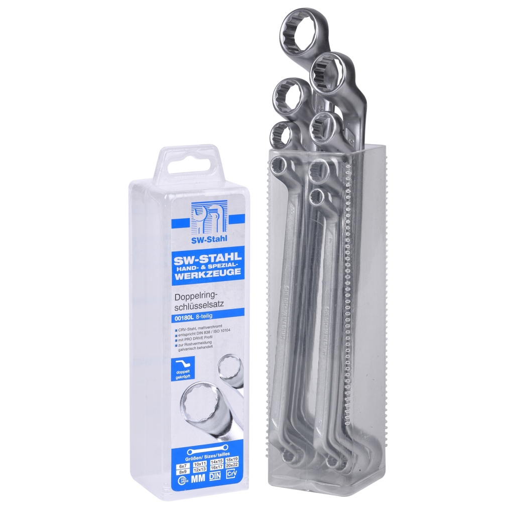 Doppelringschlüsselsatz, gekröpft, 8-teilig
