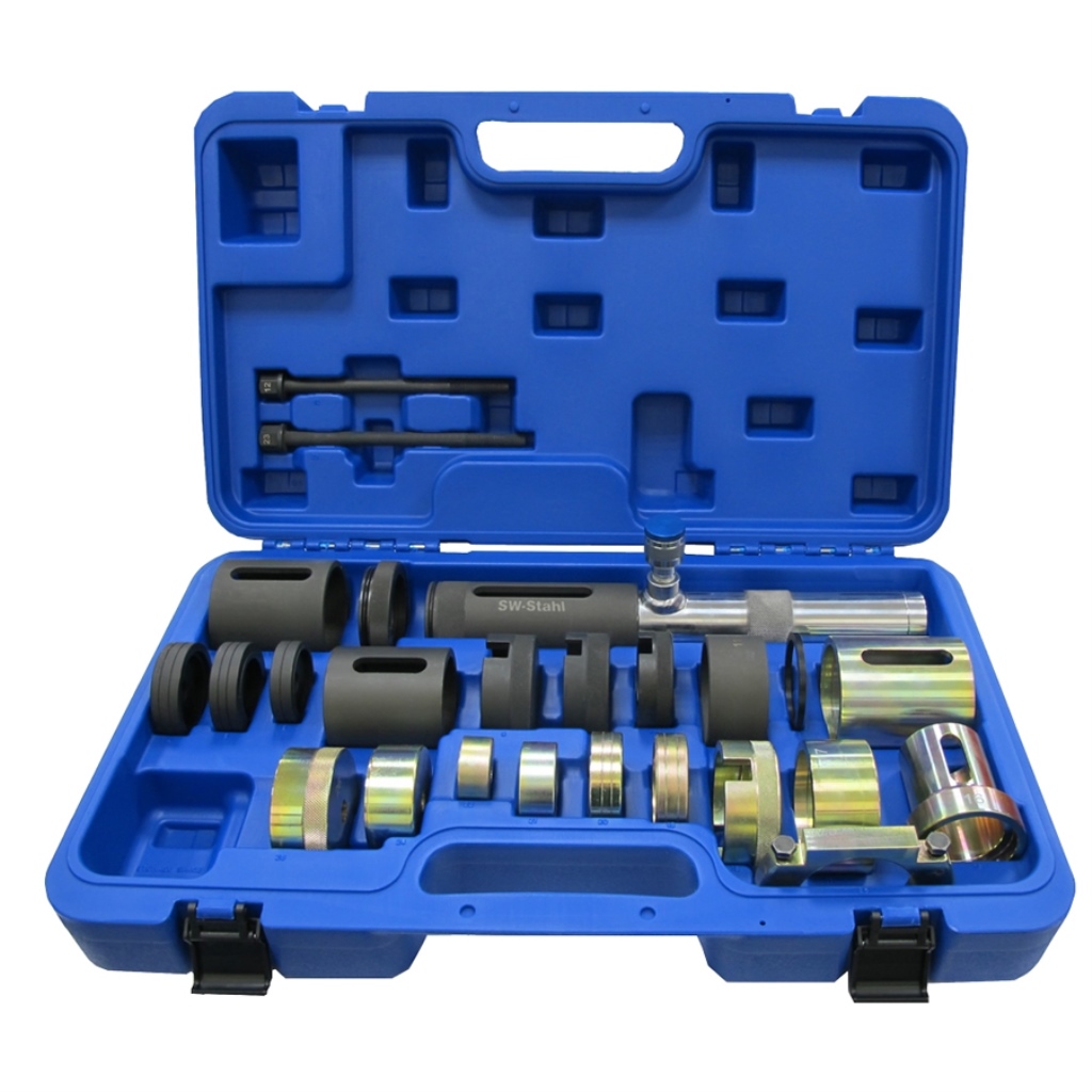 Komplettwerkzeug zum Wechseln der Gummi- und Hydrolager am Querlenker, Zug- und Druckstreben von der Vorderachse mit 5 t Hydraulikzylinder.Passend für: