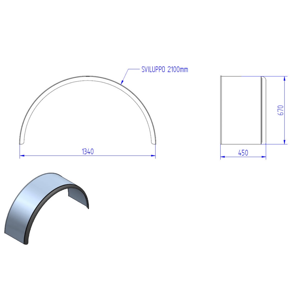 Kotflügel mit Gummibord, L: 2100mm B: 450mm