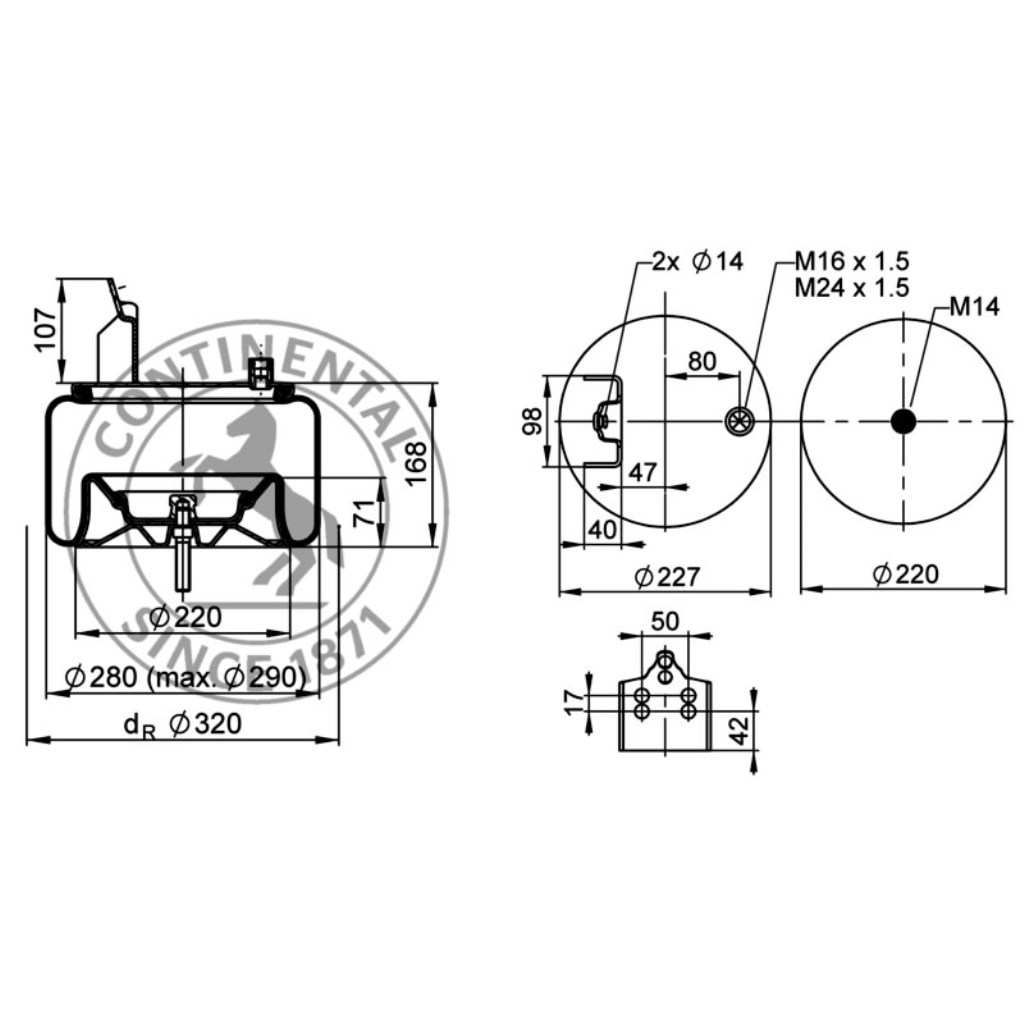 M14: max. 120 NmM16x1.5: max. 20 NmM24x1.5: max. 60 Nm•Gewicht: 6,6 kg •Höhe: 275 mm •Durchmesser: 290 mm