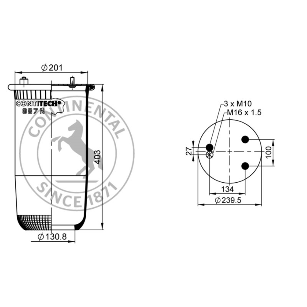 Luftfederbalg mit Metall, ohne Kolben, CONTI