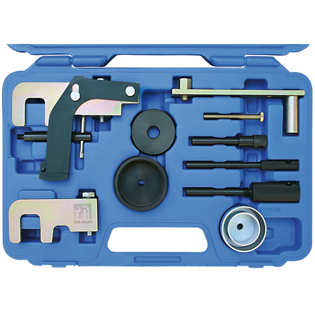 für Common-Rail Motoren 1.5l + 1.9l + 2.2l + 2.5l von Renault, Opel, Nissan.Beinhaltet wichtige Werkzeuge zum Positionieren und Arretieren von Kurbelwelle und Nockenwelle bei Zahnriemen- und Motorreparatur.Mit Motorcode: K9K, F9Q, G9T, G9U