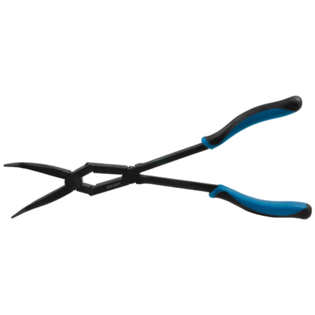- durch die Doppelgelenke bleibt die Zange auch bei voller Öffnung schmal, dadurch ist ein viel tieferer Arbeitseinsatz möglich