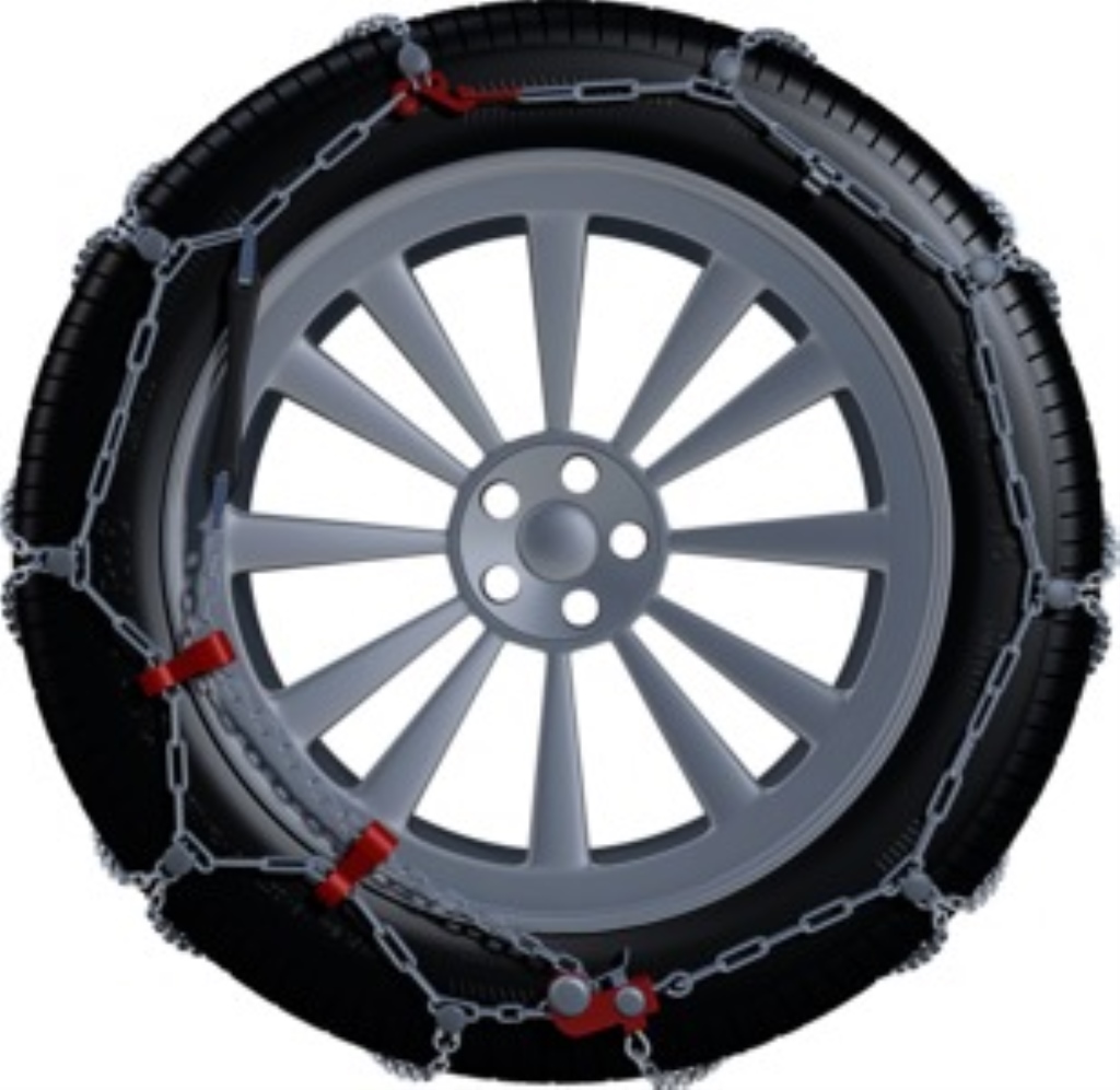 Die manuell zu spannende Schneekette mit feingliedriger Innenkette für Fahrzeuge mit Freiraum-Einschränkungen
