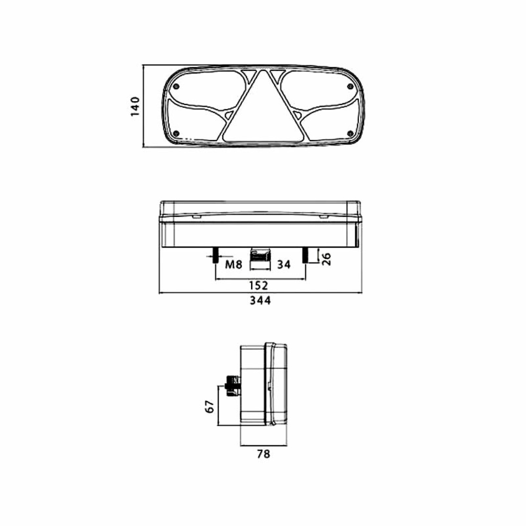- 344 x 140 x 78 mm